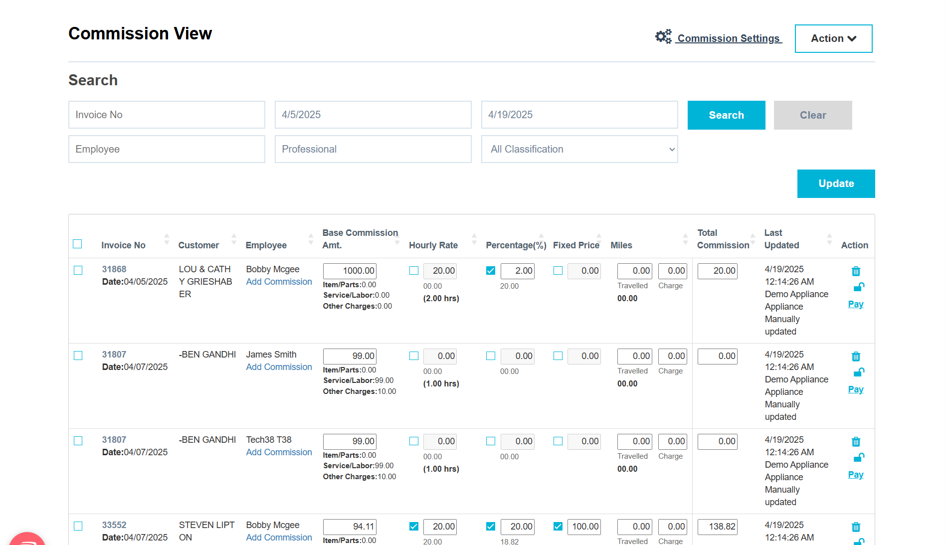 Yes, you can customize commission rules for each technician based on job type, location, or performance tier.